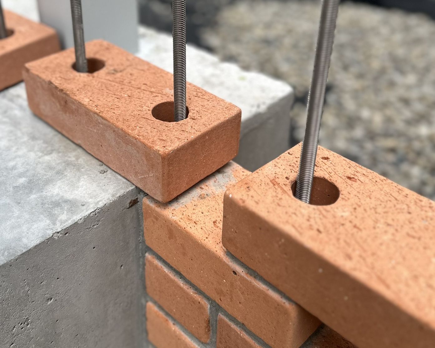 恆笙建築 完成位於台中-烏日的「昕昕裏山」社區,本案藝術磚牆為建築一大特色,由33,187塊的紅磚疊砌而成,從紅磚材料選擇、圖面檢討,一直到匠人嚴選逐步發展,最終我們採用〈孔洞清水磚〉搭配的金屬螺桿,並加入金屬框架結構設計,讓台灣建築磚牆藝術再次體現,亦更加穩固。