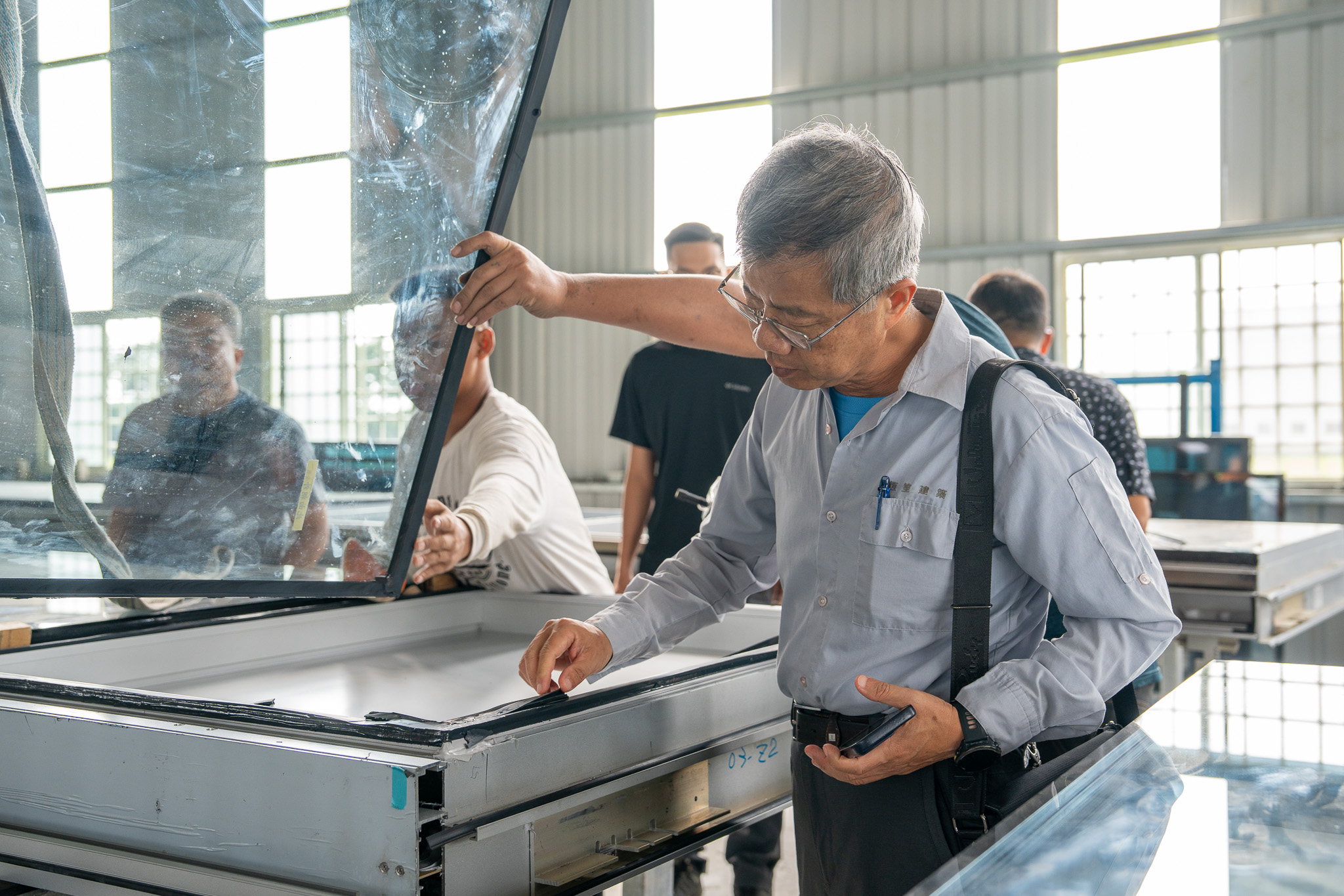 依設計裁切、磨邊、鋼化,檢查尺寸、厚度與外觀。