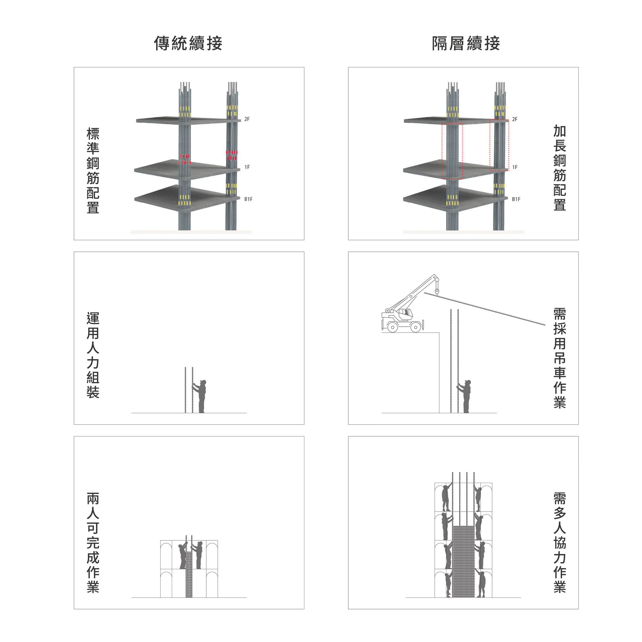 有鑒於2016台南大地震的警訊,選擇較費時費工的「隔層柱筋續接」 ,