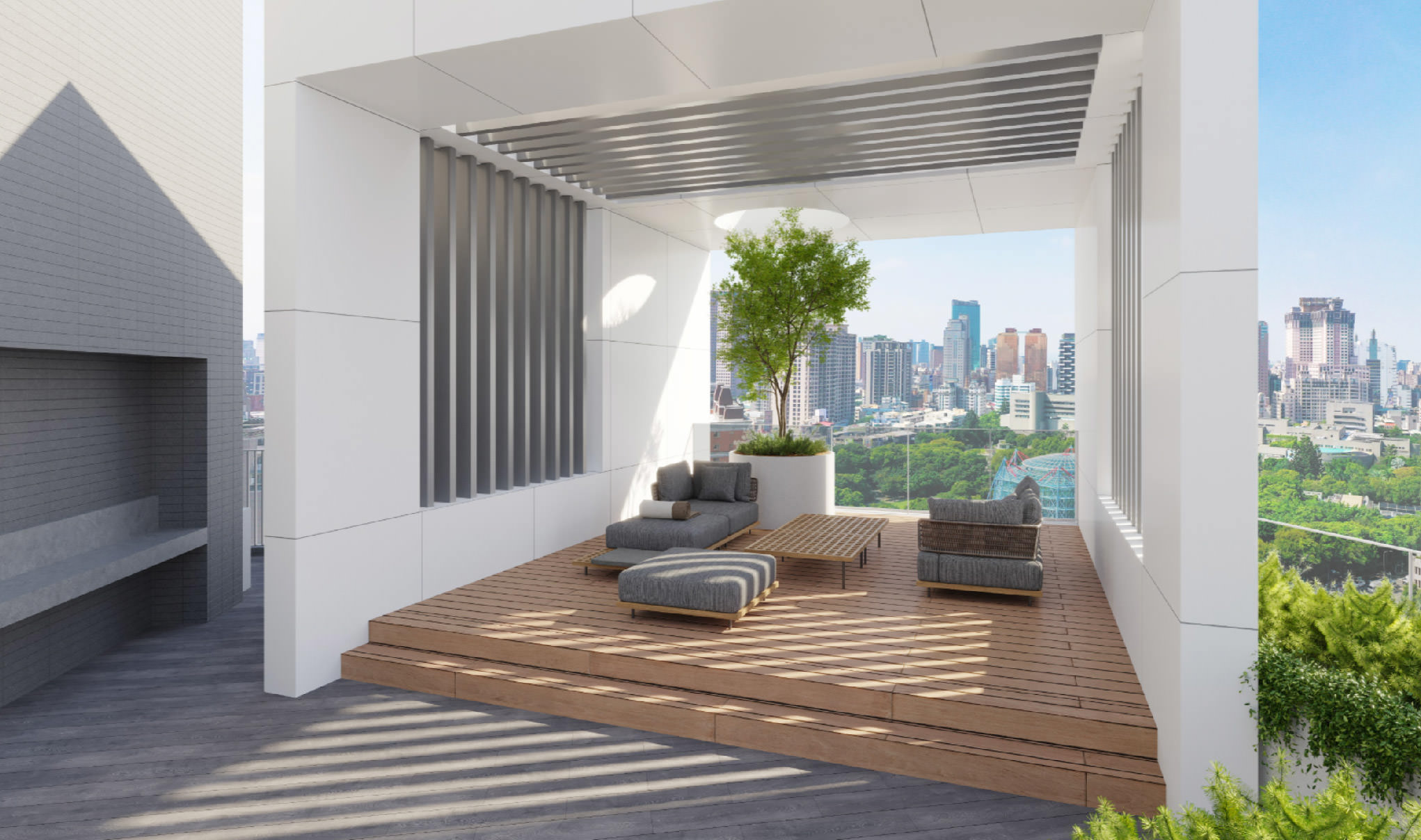 台中市北區|打破規律平凡的對稱觀造型,層次分明的建築美學,立面豐富的表情與錯落的景觀植栽呼應外部開闊的綠地環境。珍稀的41戶純住宅多達11種格局,每戶大面積採光標準層的跳島大露台,高樓層漸退為3併、2併,部分戶型陽台大膽轉向45度,面對植物園景觀,在城區中新與舊的建築群貌有了新的詮釋。