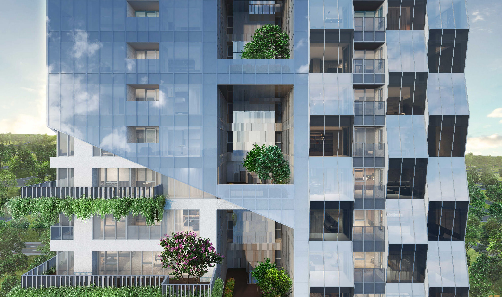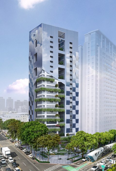 台中市西屯區|國際團隊以數位建築與低碳美學,在城市裡植下一座革命性的建築。建築7°斜角帷幕玻璃呈現寶石切面外觀,四面採光引入光影變化,兼具節能與美感。外觀綠意映照東海校區,植栽如綠色流瀑,象徵與自然共生的初心。60%高綠覆開放空間,92戶住家、1戶店面,每戶面面採光,每3層設空中花園,含8戶私家綠院,形塑如空中三合院的共享自然場域,串連社區情感,讓生活更貼近四季自然。