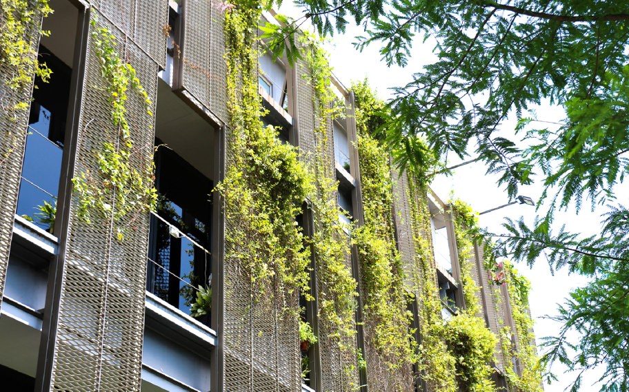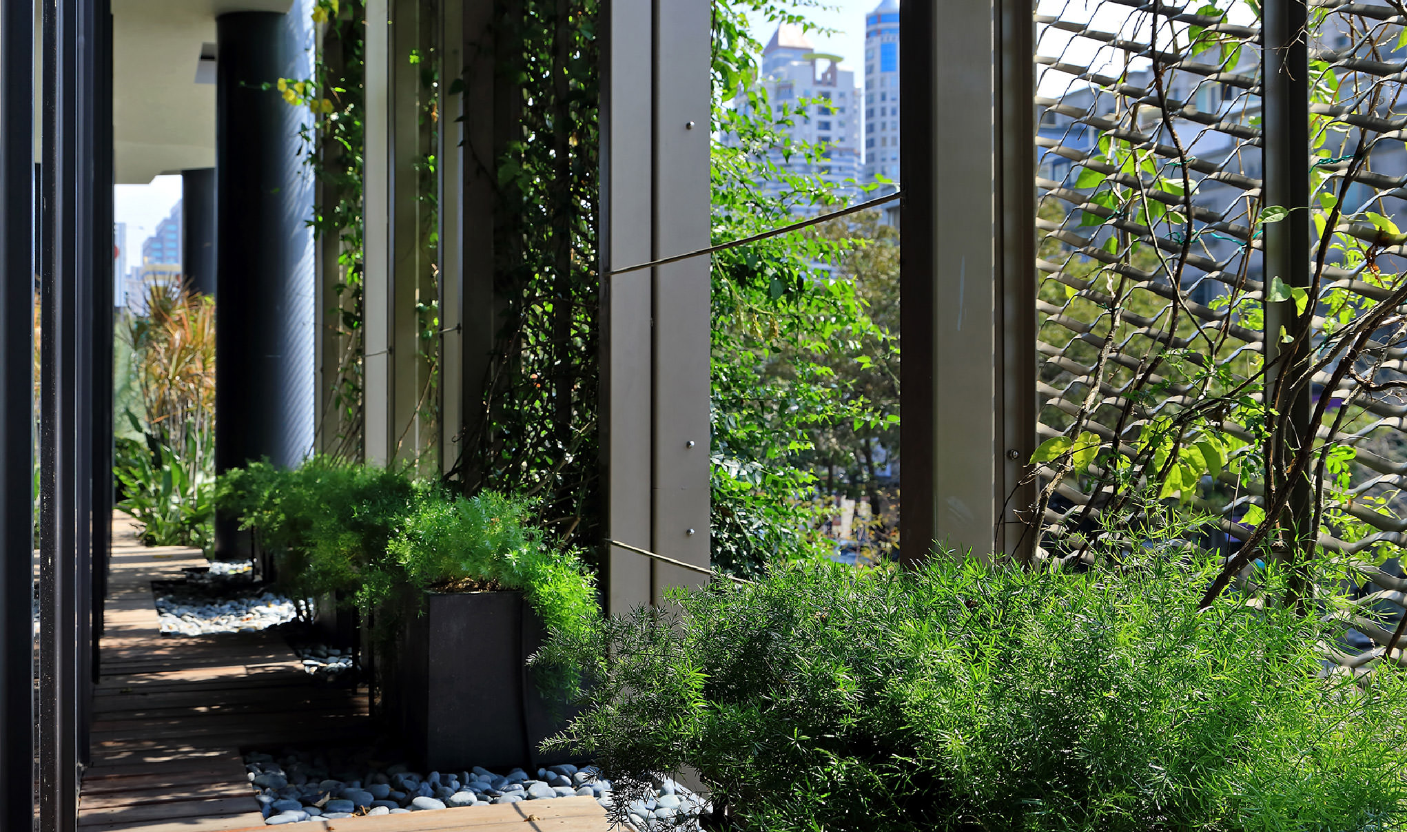 位在七期公益路、惠文路口,建築外觀層退疊翠,為攀爬植物預設路徑的擴張網結合建築造型,濃縮著WOHA綠色建築精髓,讓路過的人為之驚豔。半開放的一樓景觀水綠交織,是藝術與人文的展場、也是品味生活的場域,讓客戶真實感受企業的用心與特別的禮遇。